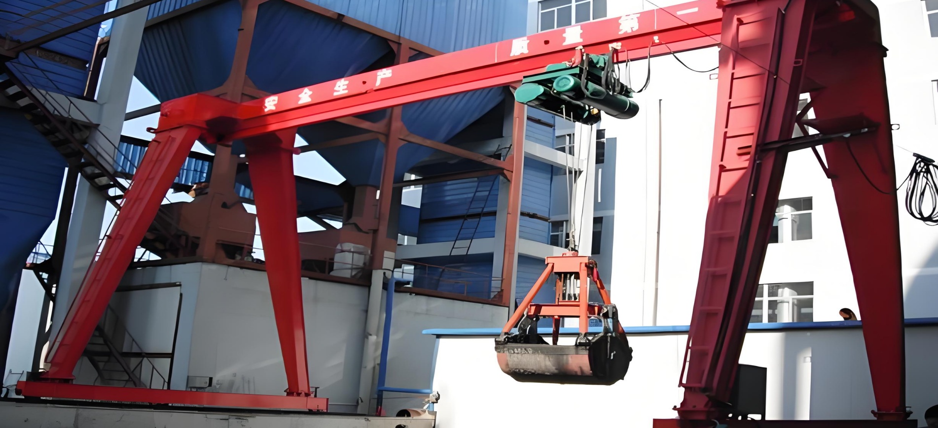 門式抓斗起重機,又可以分為單梁抓斗起重機和雙梁抓斗起重機.這種起重機將煤、礦石和磷酸鹽之類的散貨從貨艙里卸到漏斗里,然后經(jīng)傳送帶卸z堆貨場或裝車貨臺。起重設(shè)備抓斗起重機為散料和顆粒狀物料。抓斗橋式起重機常規(guī)配置:采用司機室控制,司機室分開式和閉式兩種。各機構(gòu)采用繞線式起重電機,電阻調(diào)速。起重設(shè)備抓斗橋式起重機工作級別:A6、A7,工作環(huán)境20℃~+40℃本機型不推薦用于有防爆、緣要求的工作環(huán)境。起重設(shè)備抓斗橋式起重機可供用戶選擇的其他配置:1、抓斗開閉方向有平行和垂直主梁兩種;2、起重量包括抓斗自重; 3、小車帶防雨罩時,面尺寸為H+h; 雙梁抓斗起重機 4、室外用起重機總量和輪壓應(yīng)相應(yīng)增人5%5、車導(dǎo)電有角鋼ha全滑觸線兩種形式供選擇;6、本吊機有標(biāo)準(zhǔn)小車和帶稱重小車兩種供選擇;7、根據(jù)需要可配甘蔗抓斗,垃圾抓斗,木材抓斗等其它型式的抓具。8、抓斗分為:單繩抓斗、雙繩抓斗、電動抓斗、靶集抓斗等